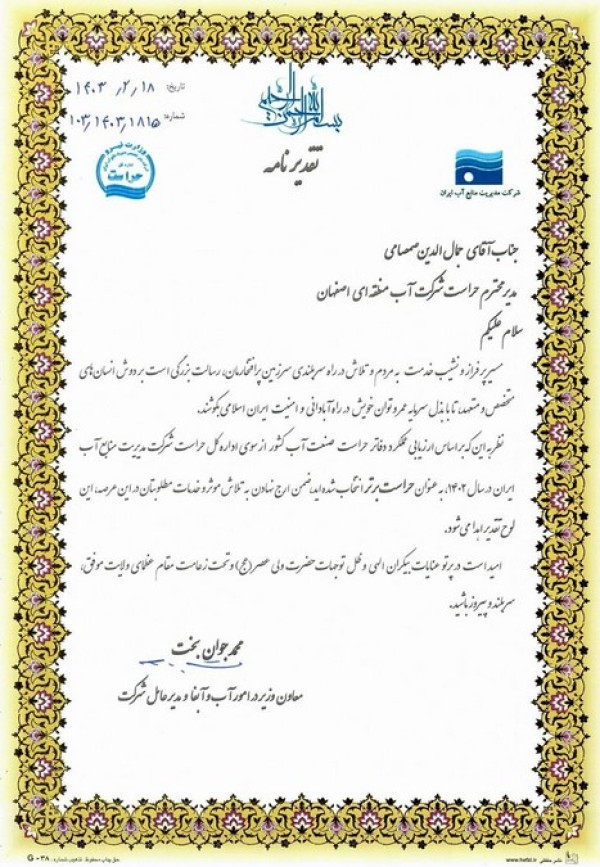 به گزارش روابط عمومی شرکت آب منطقه ای اصفهان، بر اساس عملکرد سال 1402 حراست شرکت آب منطقه ای اصفهان بر اساس شاخص ها و ملاک های تخصصی در مرکز حراست وزارت نیرو و برنامه راهبردی حراست صنعت آب کشور شرکت مادر تخصصی مدیریت منابع آب ایران در همه ابعاد حفاظت پرسنلی، حفاظت فیزیکی، حفاظت اسناد، حفاظت فناوری اطلاعات و ... ، مورد تجزیه و تحلیل و ارزیابی و حائز رتبه عالی قرار گرفت.